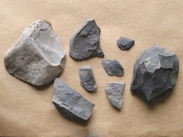 When excavating a site, archaeologists find and collect stone flakes and tools. By examining the number and types of flakes, tools and cores, archaeologist may conclude whether people produced lots of new, formal tools, or whether people simply used the flakes themselves as tools.